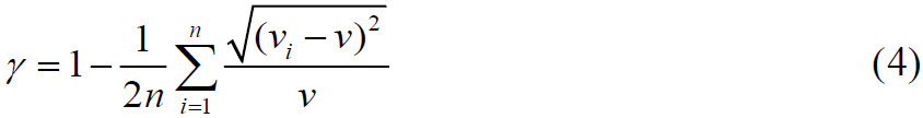 充氮工艺的评价采用均匀性指数来评价氮气流动和氮气浓度分布的均匀程度,均匀性指数采用Weltens等建立的评价流动分布特性的均匀性指数来表示(流速/混合的均匀性程度),计算公式为:
