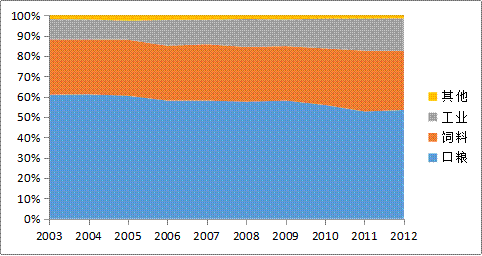 图4 我国三大主粮工业消费结构变动趋势