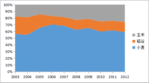 图1 我国三大主粮消费结构变动趋势
