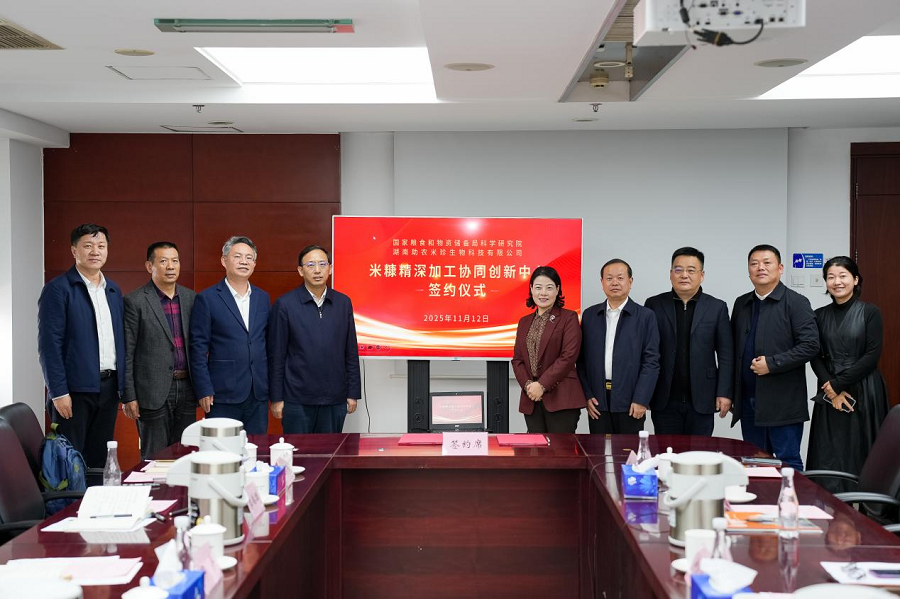 近年来,科学研究院紧扣粮食行业发展和需求,积极践行科技创新推动粮食产业发展,尤其在粮油副产物资源利用领域研发出系列科研成果。湖南助农米业有限公司以中国地理标志产品“南县稻虾米”为核心产品,是湖南省农业产业化龙头企业、国家高新技术企业、国家粮油适度加工标准化试点企业。根据协议,双方将聚焦米糠增值利用,共同打造集技术研发、成果转化与标准研制于一体的协同创新平台,通过联合申报科研项目、推动科研成果产业化,全面提升粮油加工副产物综合利用效率与经济价值。