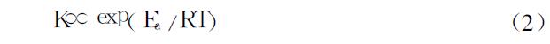 淀粉糊是一种非牛顿流体,具有依时性和黏弹性行为,但它的流变特性也受糊化程序的显著影响。淀粉糊在1~1500s-1下的流变行为通常用幂律方程和Herschell-Bulkley模型来表达,少数用Bingham模型、Casson模型、Mizrahi-Berk模型来表达。笔者研究过的甘薯淀粉和绿豆淀粉糊和粉团都适合用Cross方程来表达,且拟合精度比幂律方程高。虽然其流变行为的总的规律是剪切变稀,但在糊化早期或高温(121℃)下,其悬浮液是表现为胀塑性(dilatancy)流变行为的。稠度指数K和流变行为指数n都取决于淀粉品种、淀粉浓度和测试温度。稠度指数K与流体稠度或浓度有关,根据其值大于1或小于1来判断流体是胀塑性还是假塑性,它与牛顿液体的黏度具有同样的物理特性,量纲与黏度近似。而Arrhenius方程(见式2)中的是指其对温度的敏感性。式中Ea为活化能(kJ/mol)。